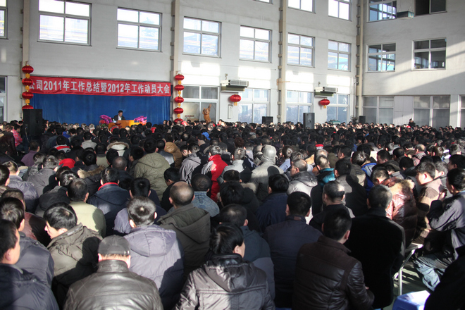 正月初七,公司在網(wǎng)球場召開每年一度的全體員工大會,總經(jīng)理張鐵漢在會上做2011年工作總結(jié)暨2012年工作規(guī)劃。董事長在會上做重要講話。
